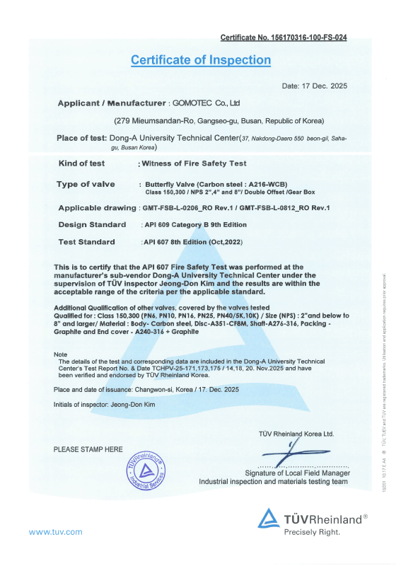 UL 1091:2022 Certificate of Compliance (Butterfly Valves)